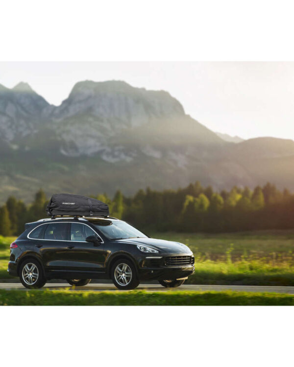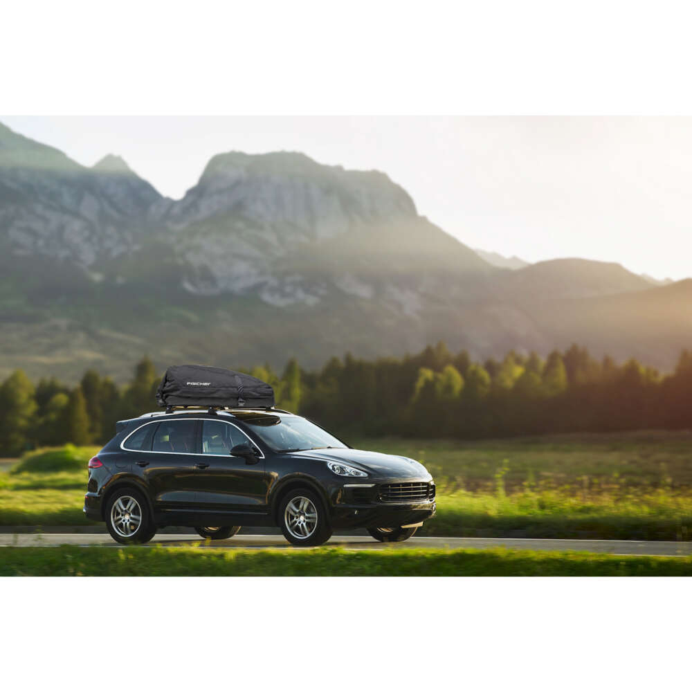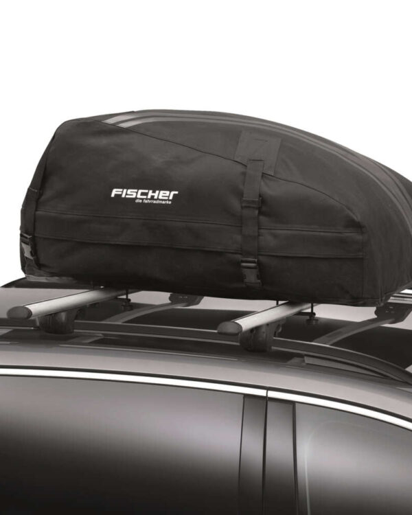 Zložljiv strešni kovček FISCHER je prilagodljiva prtljažna torba za streho vozila. Strešni kovček je izdelan iz fleksibilnega poliamida in ima dolgo zadrgo za odpiranje in zapiranje. Torba se lahko tudi zloži, da prihranite prostor. Nato se velikost zmanjša s 100 x 40 x 80 cm na 100 x 10 x 20 cm. Strešni kovček FISCHER zato bolj spominja na nahrbtnik kot na klasičen, tog strešni kovček iz trdega materiala. Hkrati je škatla popolnoma vodoodbojna, ker je v celoti izdelana iz poliamida. Poleg tega so vsi šivi popolnoma zatesnjeni. Ta strešni kovček ima prostornino 270 l in zato dovolj prostora za veliko prtljage. Največja nosilnost ne sme presegati 50 kg. Kovinska struktura na dnu škatle zagotavlja večjo stabilnost. Priložena je praktična torba za shranjevanje. Zložljiv strešni kovček lahko pospravite in shranite na prostorsko varčen način, ko ga ne potrebujete. Namestitev strešnega kovčka je enostavna in traja le nekaj minut. Za to niso potrebna nobena orodja. Zložljivi strešni kovček FISCHER je združljiv z vsemi običajnimi nosilci za ograjo. Zaboj je primeren za nosilce širine do 80 mm in višine do 32 mm. Razdalja med nosilci ograj na strehi je lahko med 500 in 700 mm.